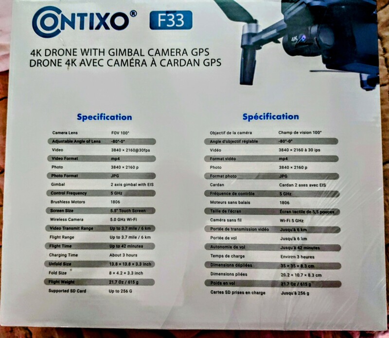 It is 4k drone with Gimbal, 5.5" remote control. Gps, I will post pics of the box that has specs as well