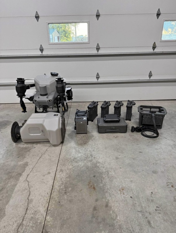 DJI T50 Drone, price includes everything you see (Drone, Remote, 50L Spray Tank, Seeder, 4 Batteries, C8000 Charger and Cooling Station) Drone has a brand new set of propellers all around and has never been wrecked If you have any questions just send me a message thanks.