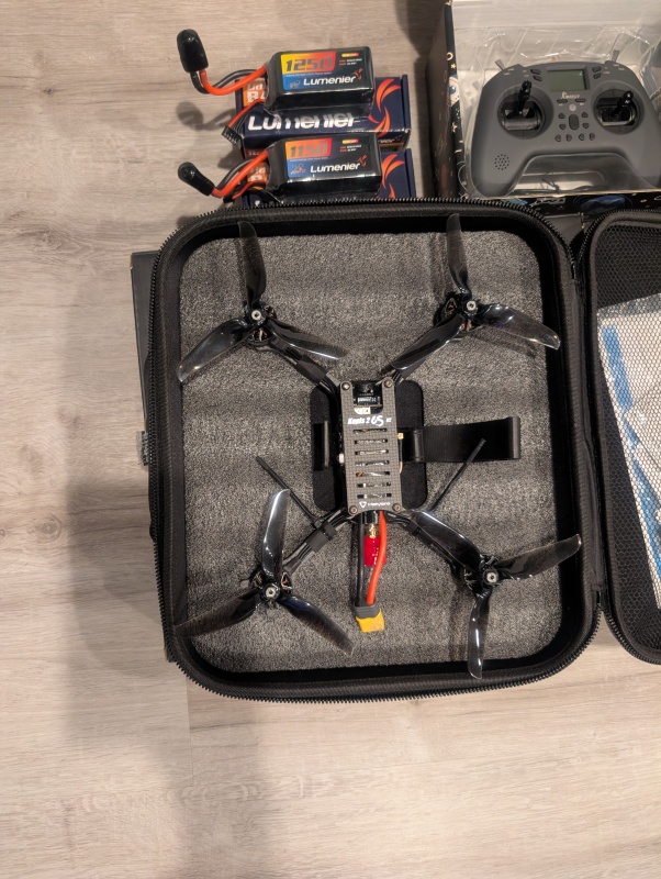KOPIS is a high-performance ready-to-fly FPV racing drone from Holybro, Low-deck design means centralized mass and excellent handling. Stretched-X motor layout is the choice of top racers because the rear props are further from the "dirty air" coming from the front props. The result is smoother cornering and higher top speed. The FPV antenna is in a unique location behind the quad, to protect against damage. Kakute F7 flight controller and Atlatl HV V2 video transmitter give perfectly integrated control of all quadcopter systems. TMOTOR P2207 1750kv motors give awesome power and speed, just like top racers. Foxeer Micro Razer FPV Camera is light and small, with great image quality. KOPIS gives all the performance, looks, and durability of a hand-built machine, without ever having to pick up a soldering iron!