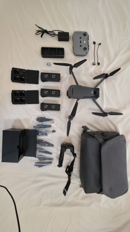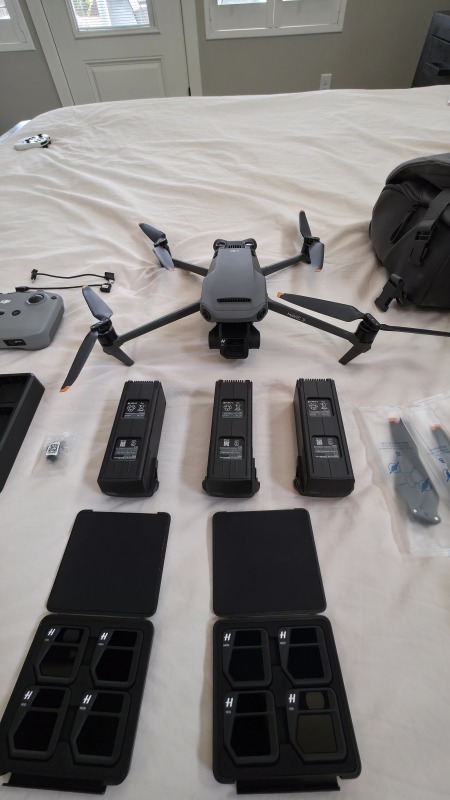 The drone operates really well. I've had no issues. Full ND filter set (excellent condition). Three batteries and a charger. All the necessary cables. Extra propellers.