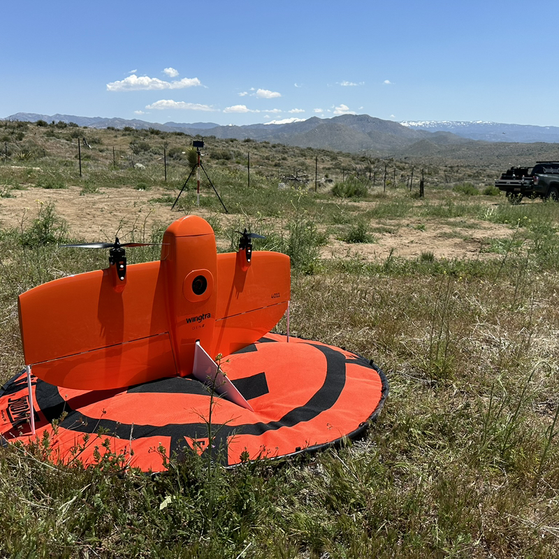 Samsung tablet with Wingtra pilot software and telemetry antenna