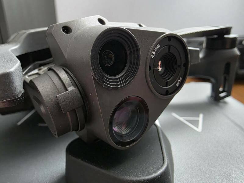 Parrot ANAFI USA (ANAMK3 kit) drone with a 4K HDR RGB camera and up to 32× zoom, as well as an integrated thermal sensor. Often used in inspection, public safety, and industrial applications.